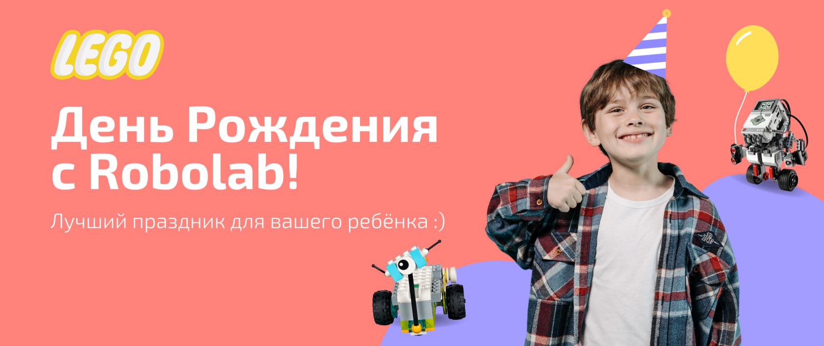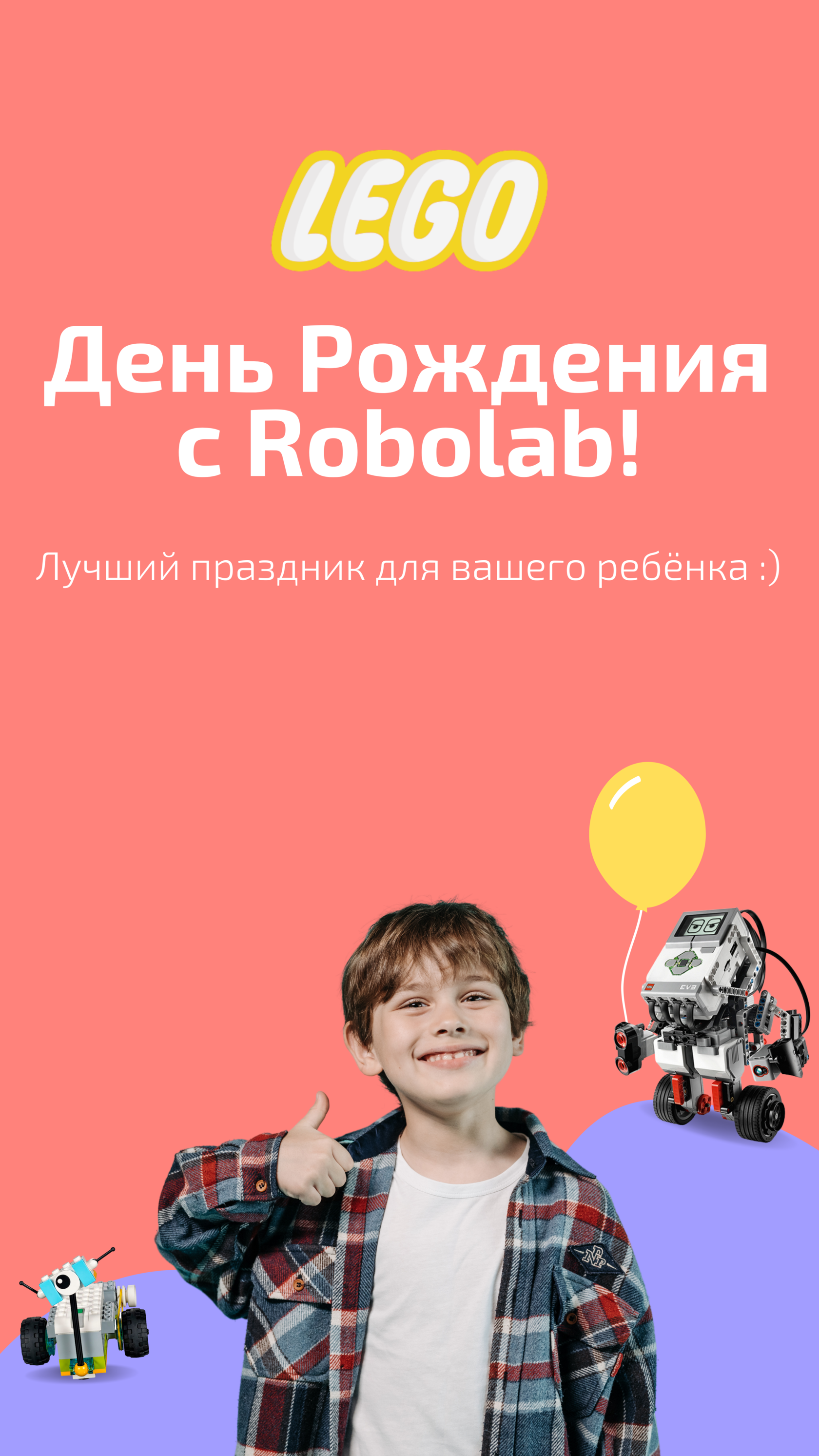 Наши опытные педагоги проведут для именинника и его друзей увлекательный мастер-класс по робототехнике, где ребята соберут модель из LEGO и запрограммируют её.